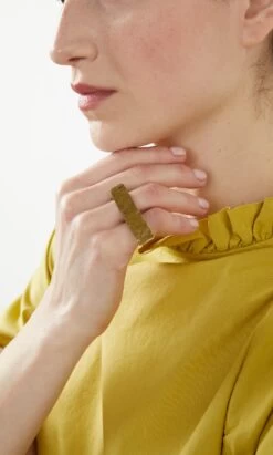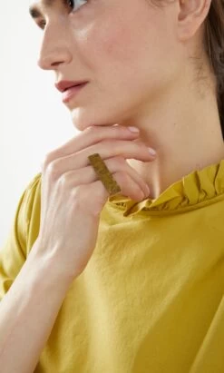 Recycled silver ring with hammered brass shard. Oxidised finish. Handcrafted in Cornwall from environmentally friendly materials.