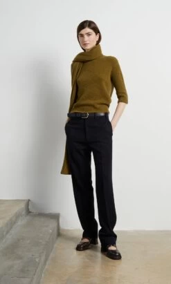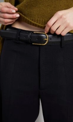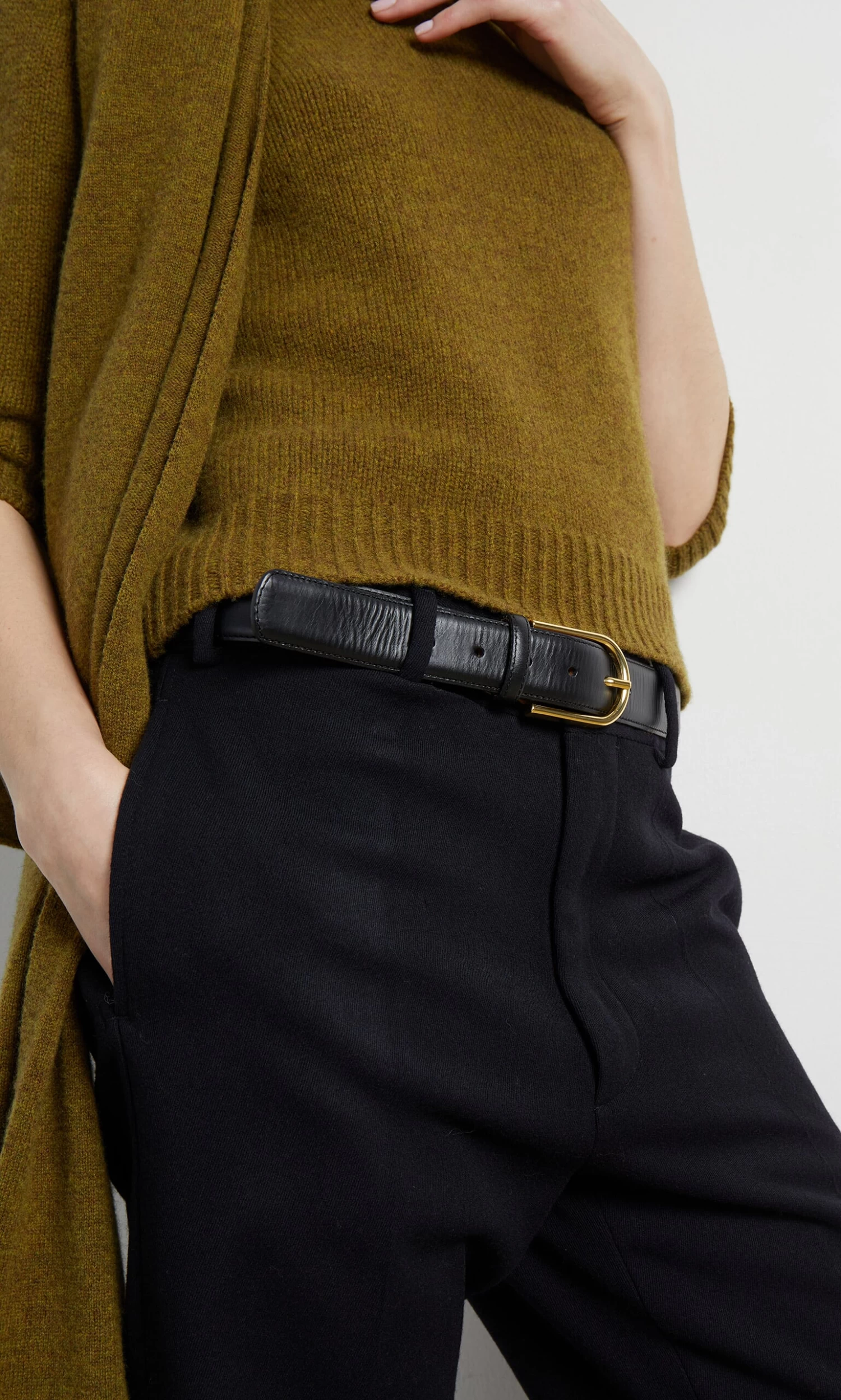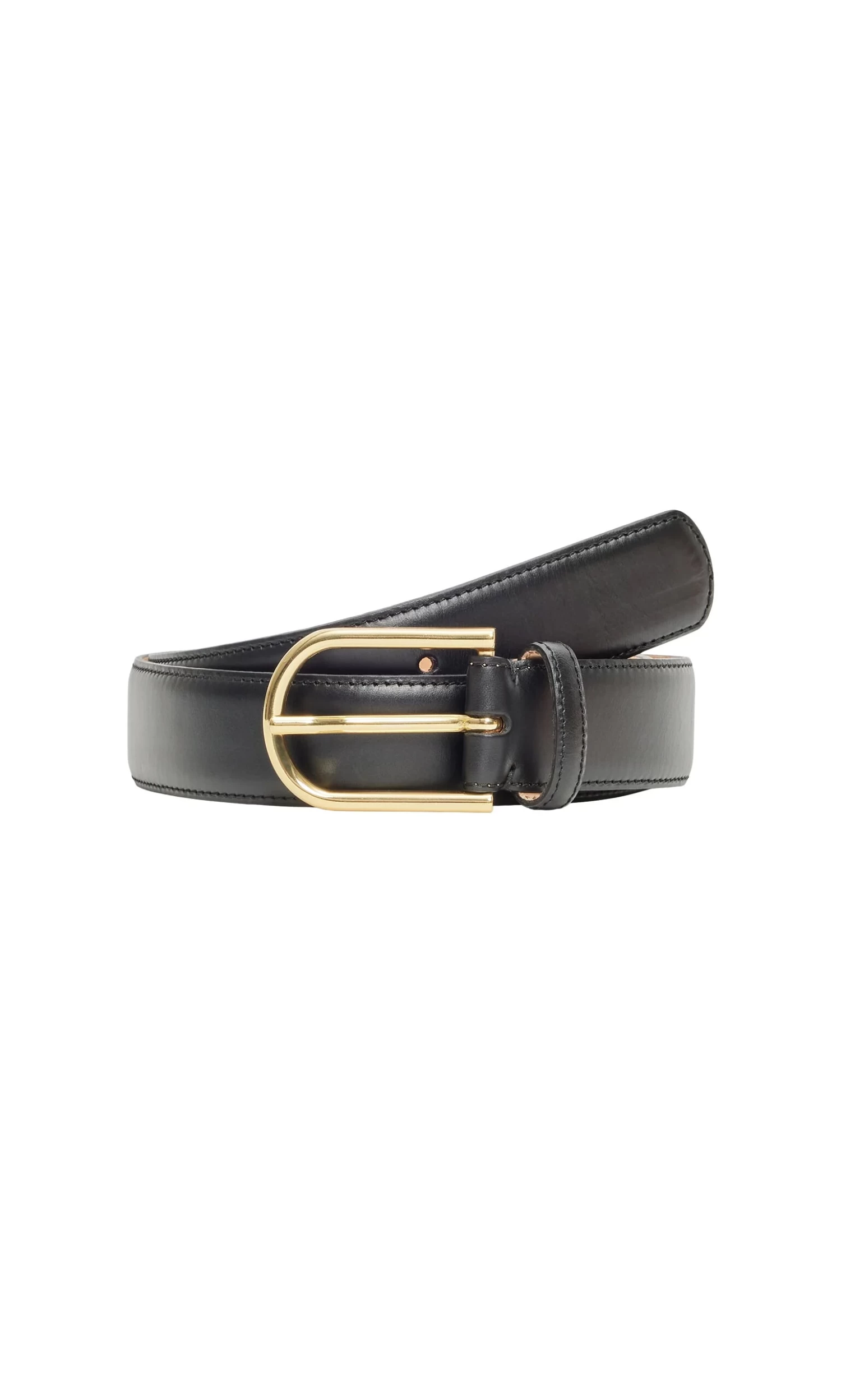 Beautifully crafted in Portugal from smooth black leather this belt is finished with a simple polished brass buckle.
