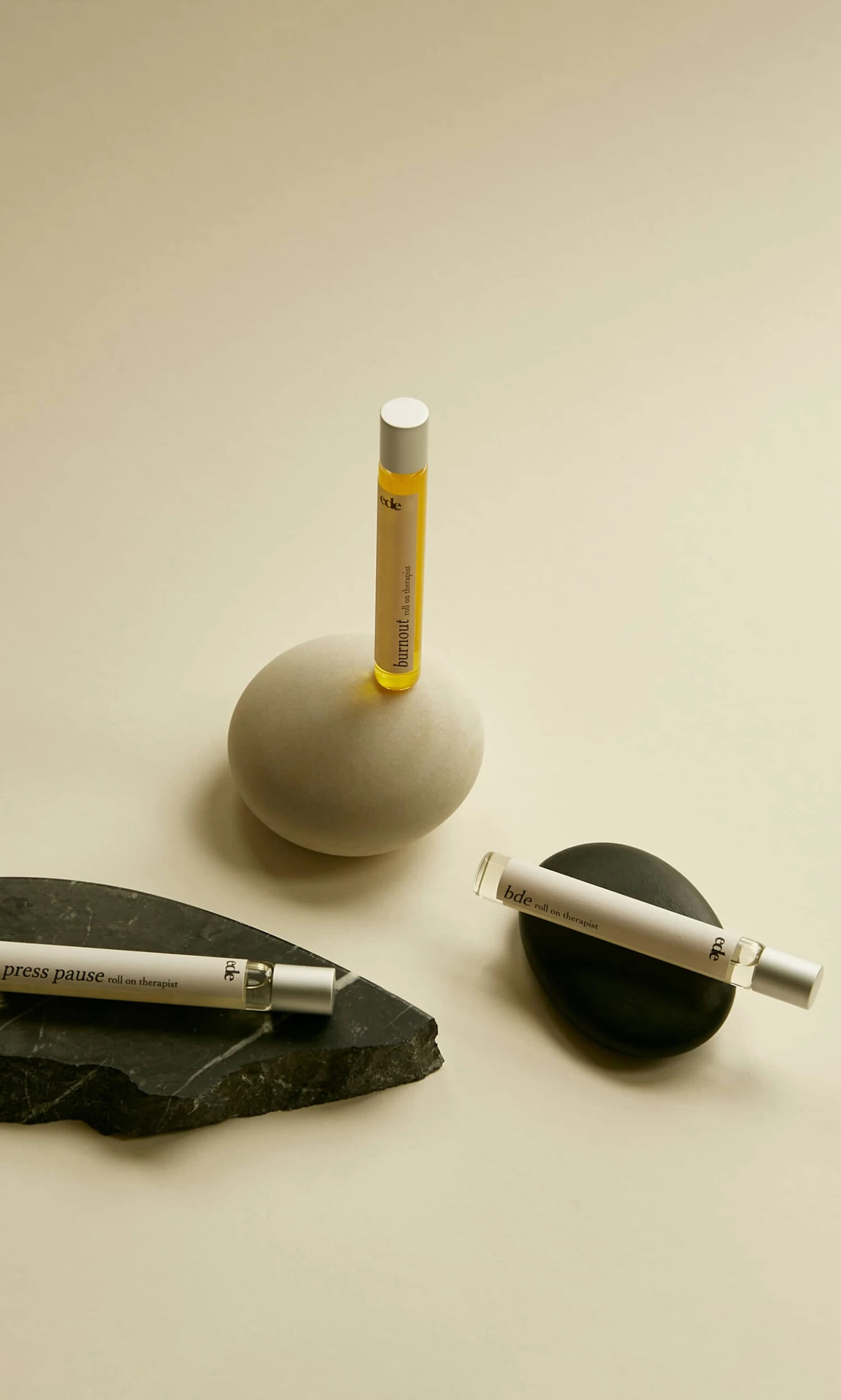 Inspired by the busyness of our lives. Whether thatโs feelings of overwhelm or underwhelm, the burnout formula helps relieve and balance the emotions to help you wind down. Set the mood. The immediacy of our world can make everything feel important. Use the burnout blend when you need to create the mental space to quieten the mind and allow rest. Simply roll over the insides of your wrists, temples or any other pulse points to soothe the mind and find your inner cool. As this product is made with organic essential oils, the aroma will dissipate on contact with the heat of the skin. For best use, roll onto the insides of the wrists and take time to breathe the aroma in deeply.