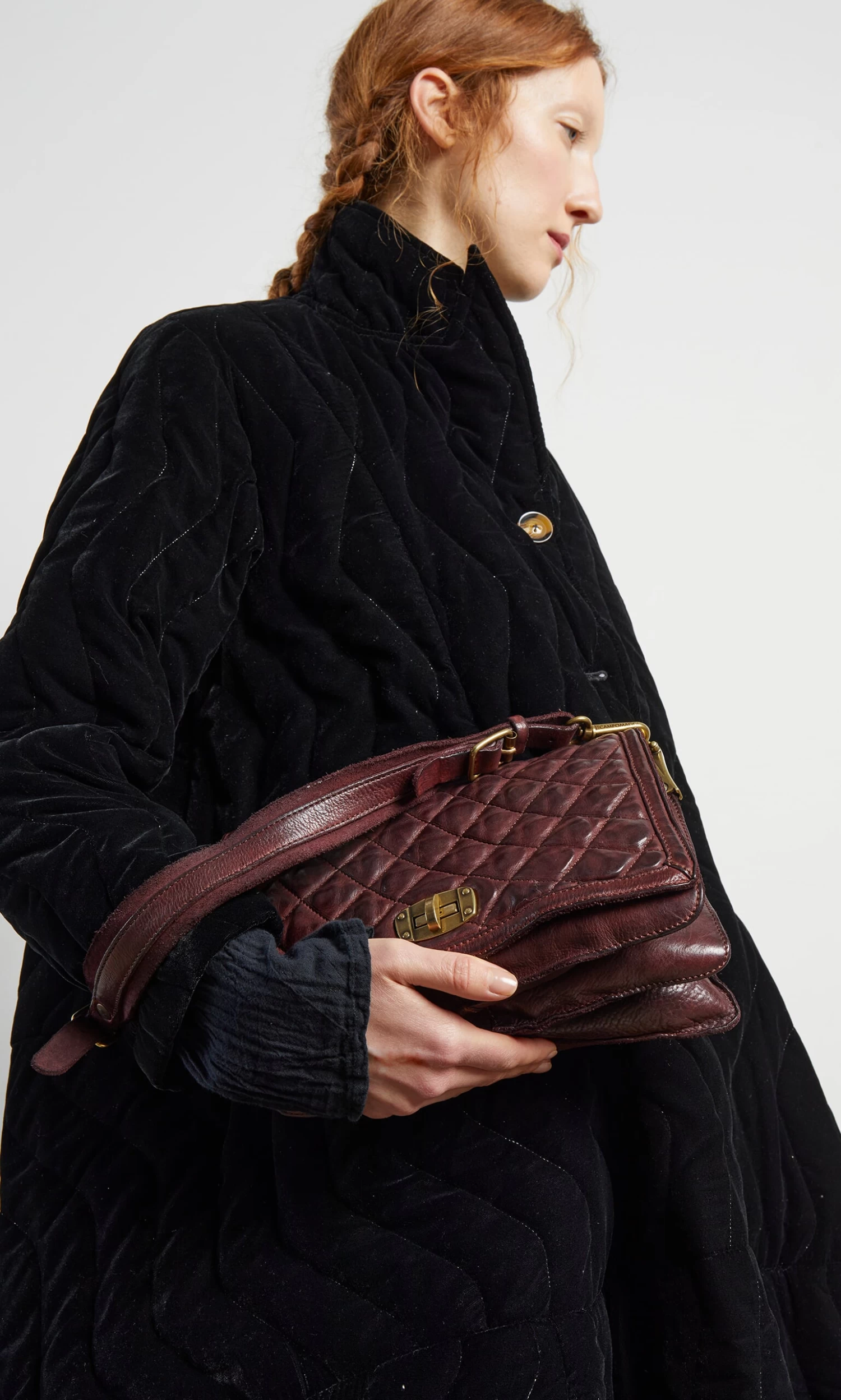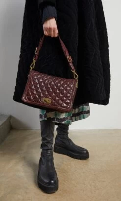 Hand-crafted from sumptuous vegetable tanned leather this burgundy bag has a quilted flap front with brass turn-lock and exterior zip pocket. Interior is organised into 3 roomy compartments, one is zipped and there is an additional zip pocket for stashing your valuables. Short detachable buckle carry handle and additional crossbody/shoulder strap. Made in Italy. Comes with a cotton dust bag and leather care kit. Campomaggi. 27x18x10cm.