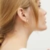 Irregular hammered-brass oval earrings suspended from golden hooks. L6.5cm.