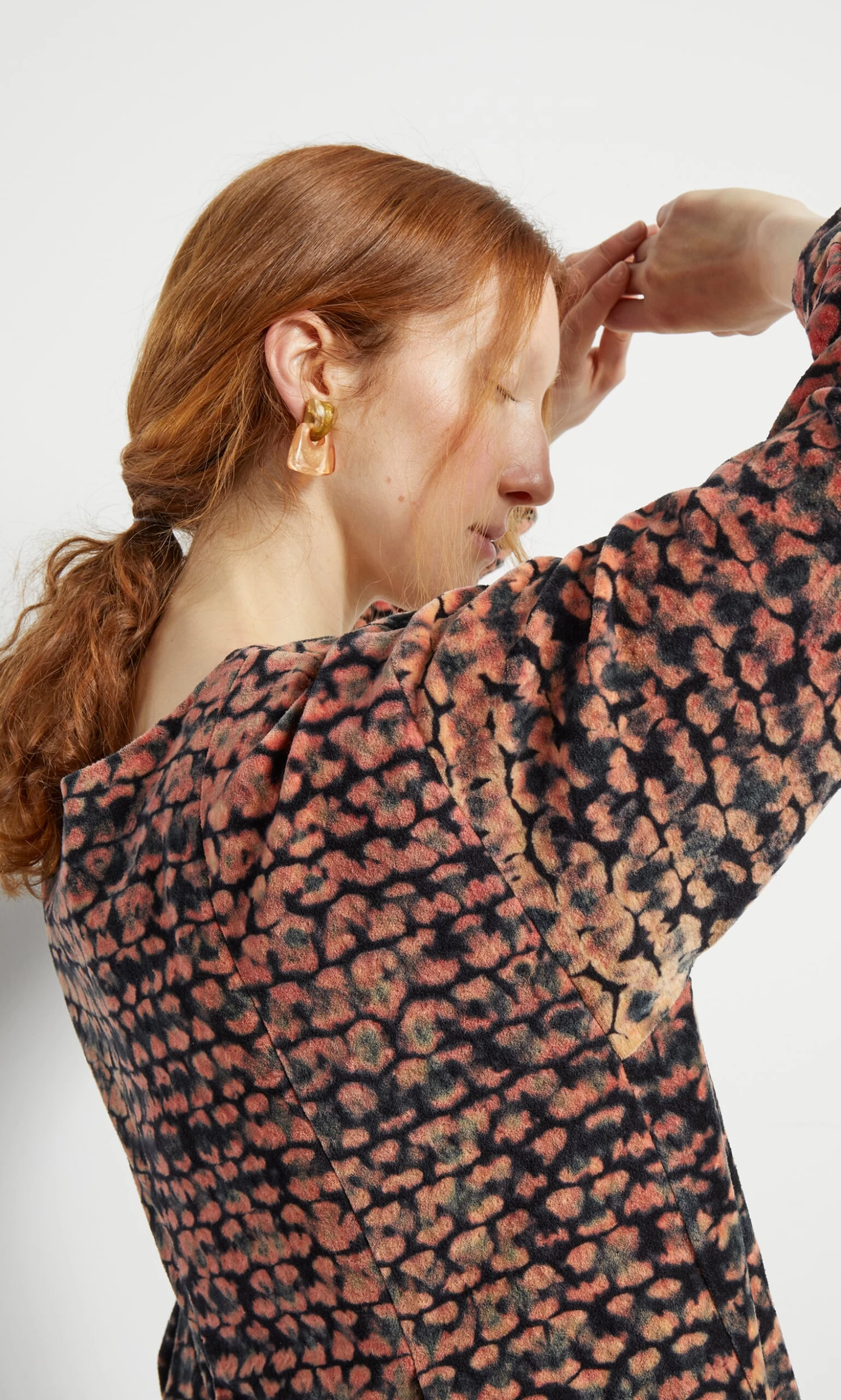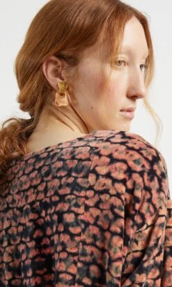 Super light iridescent marbled resin earrings crafted from a squared-off drop suspended from a contrasting loop. Clip-on, lightweight and easy to wear. Attaches in gold plated brass. Handmade in Parisian workshop. L3.5cm.