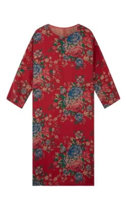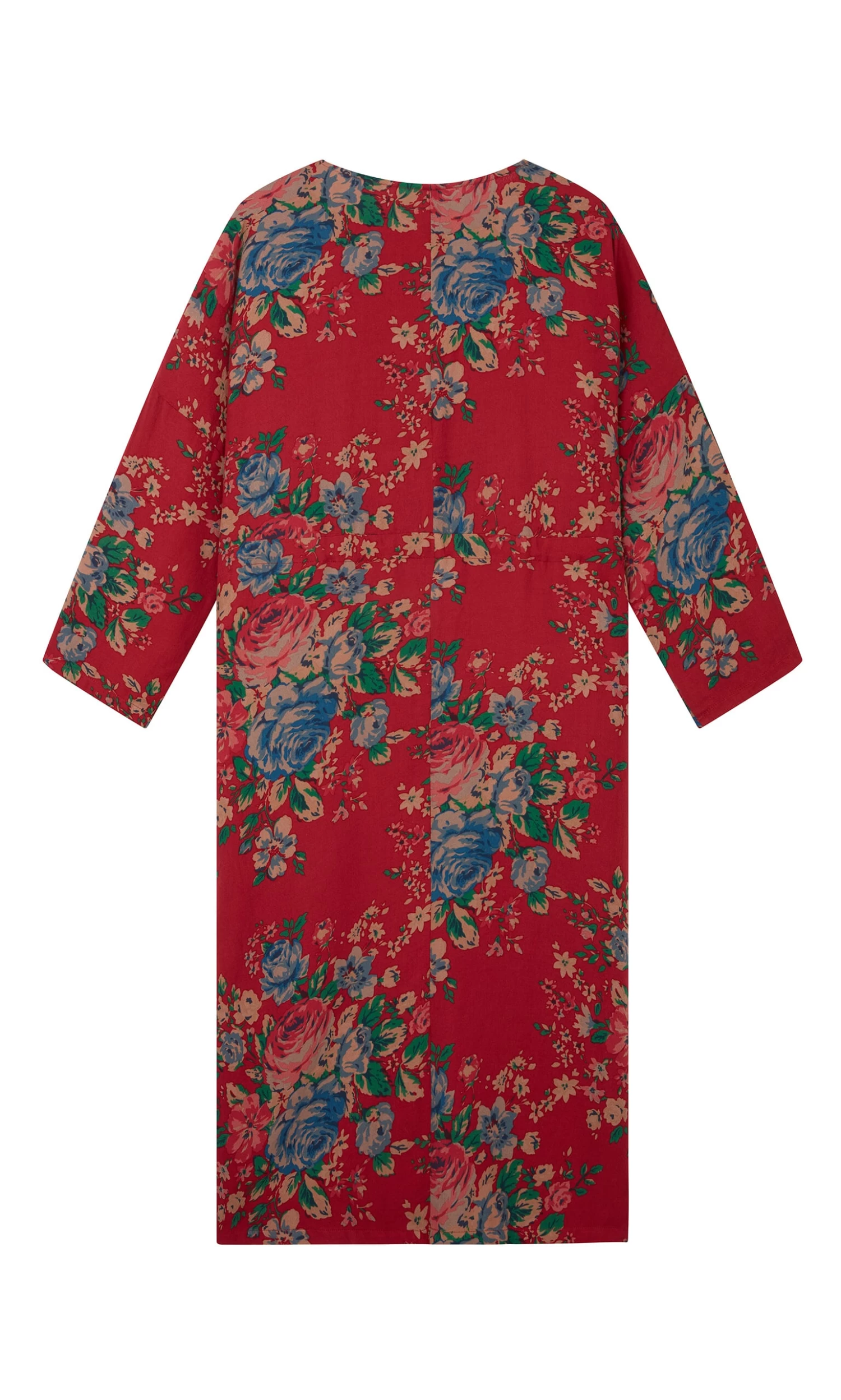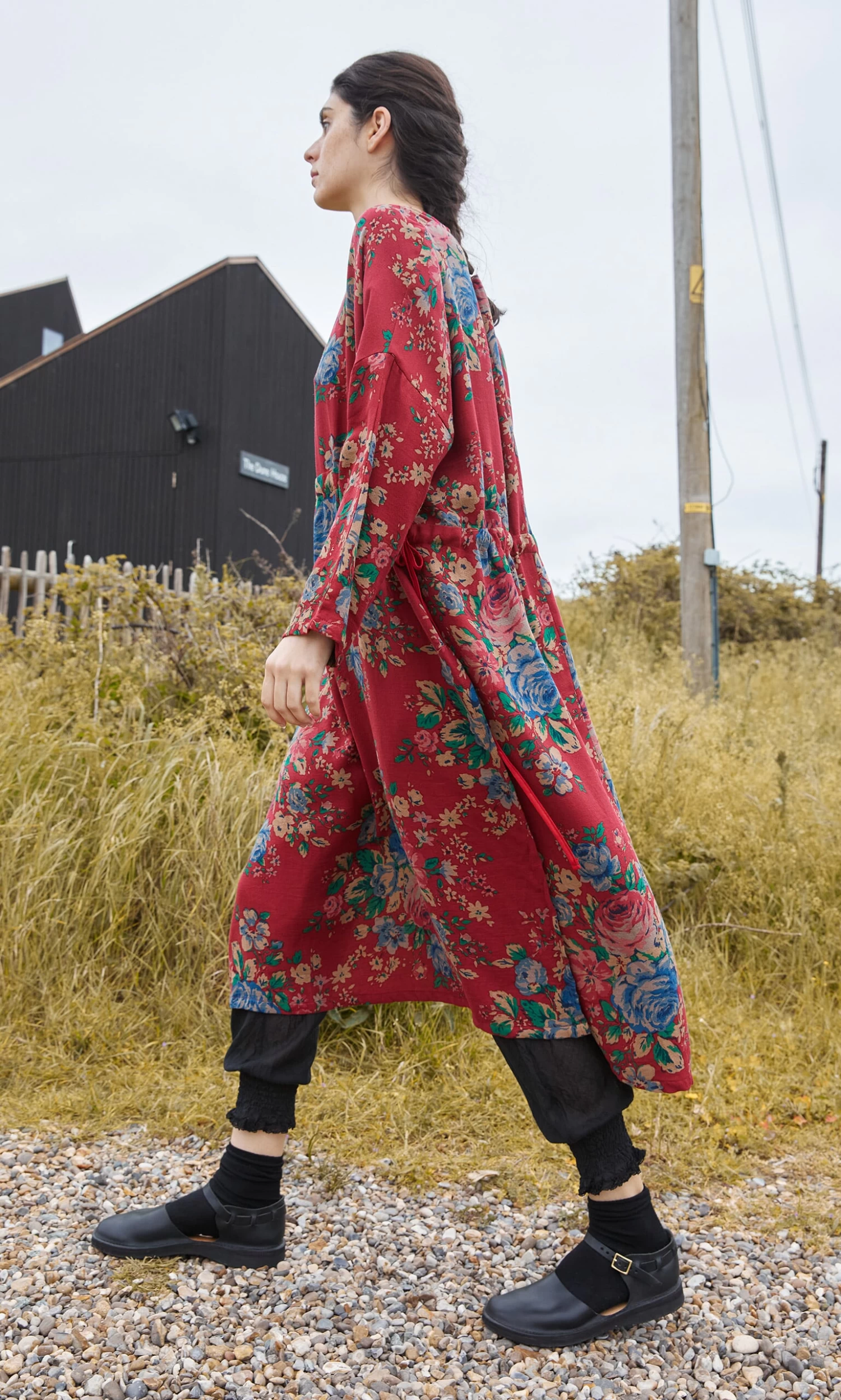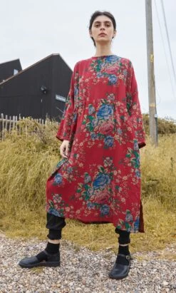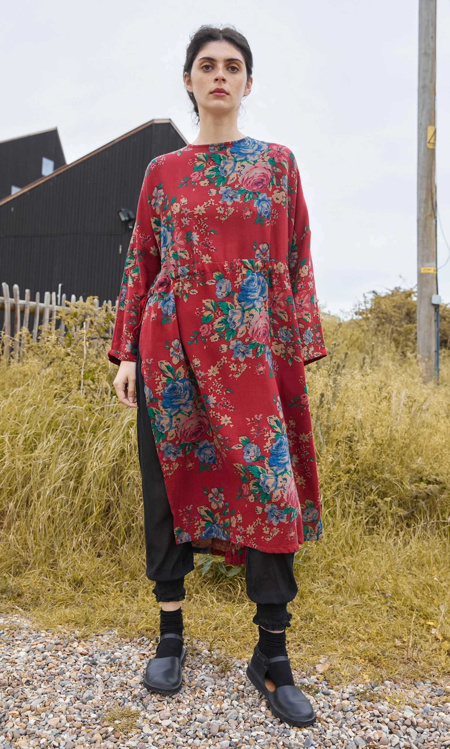 Red floral print tunic with deep side slits to the waist. Softly shaped with dropped shoulders and drawstring waistband for adjusting the fit. L116cm