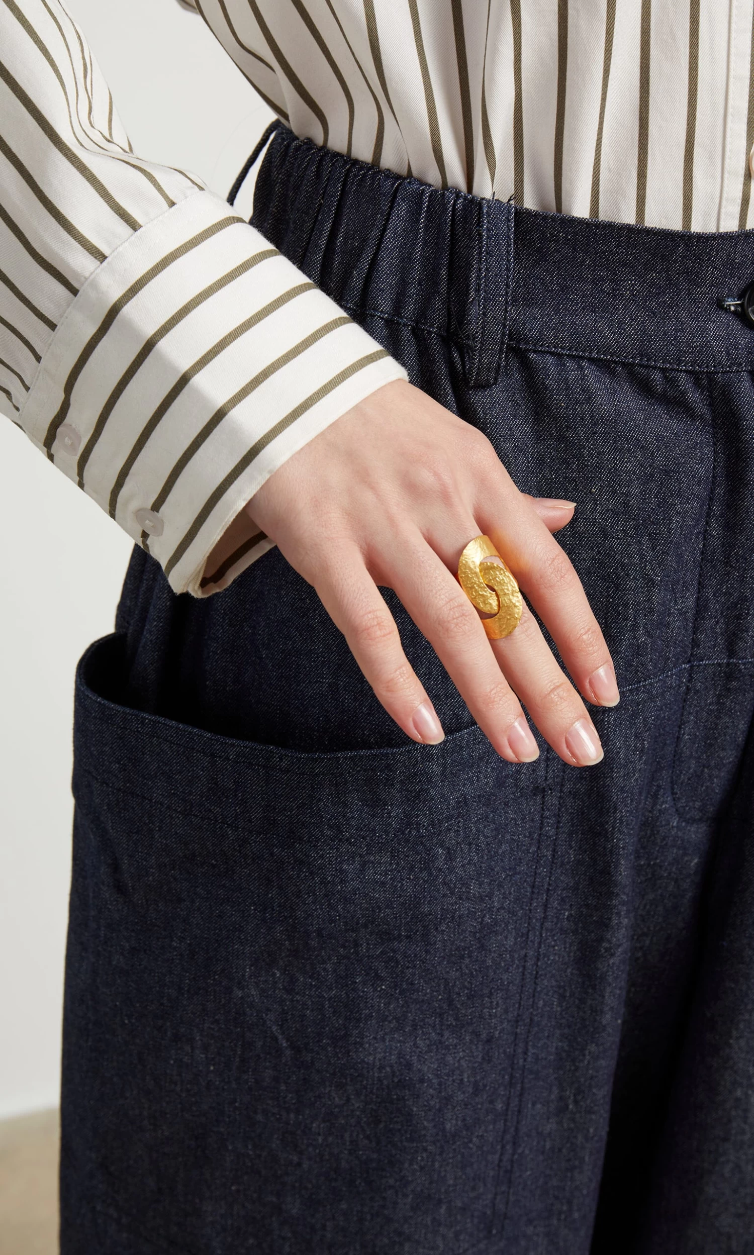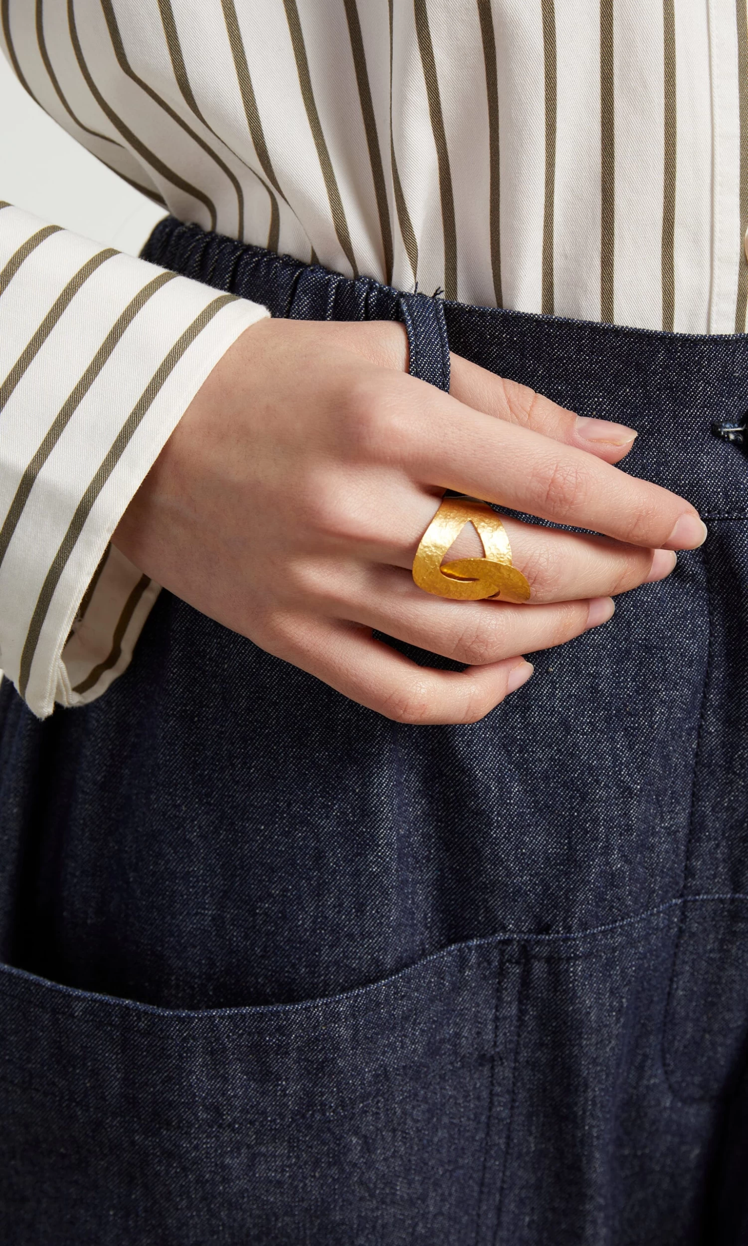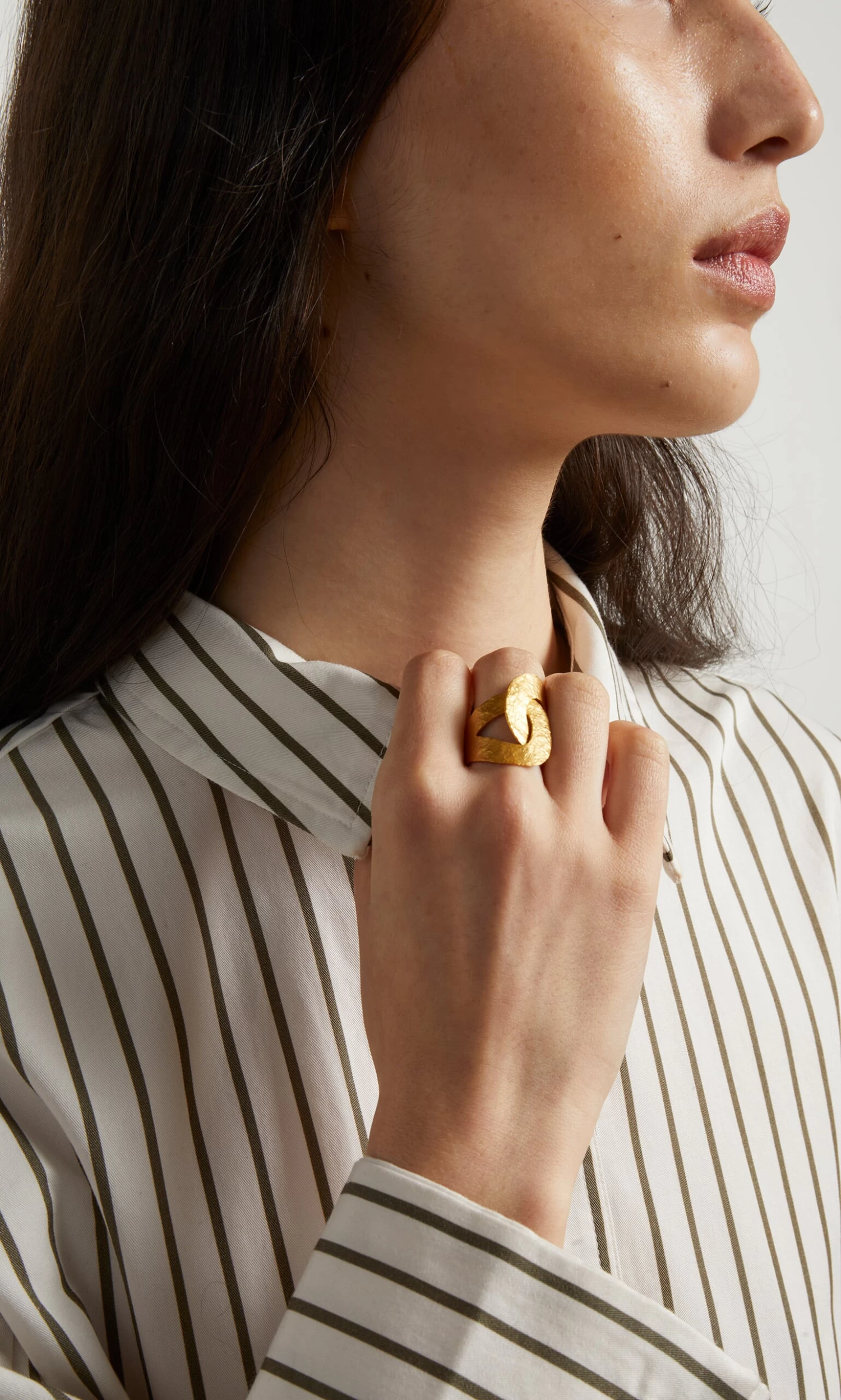 Hammered gold plated bronze ring twisted into an interlocking knot. Super comfortable to wear. UK N.