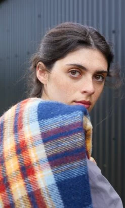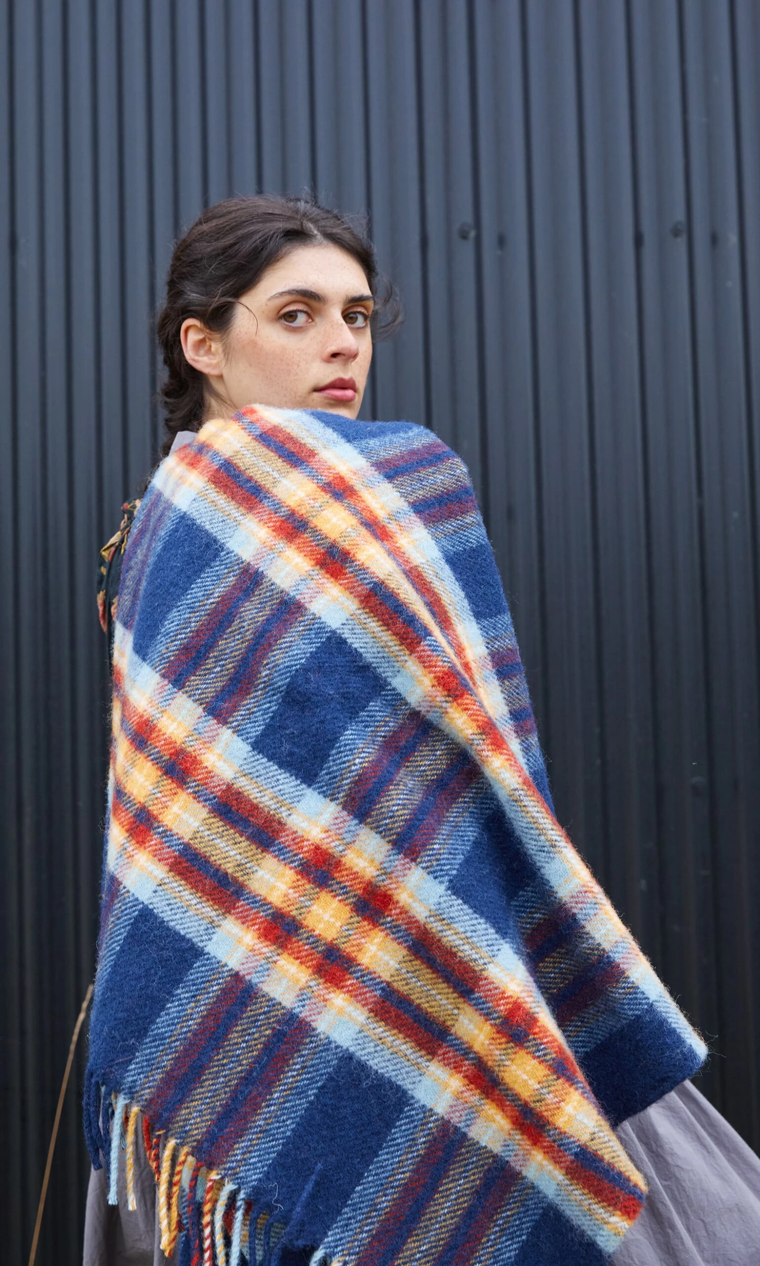 Generously sized throw in a classic elegant blue and red tartan. Made of luxurious pure new wool in a British Mill. 150cm x 183cm.