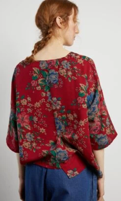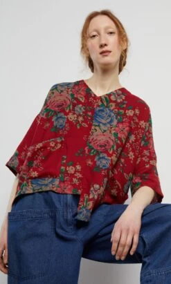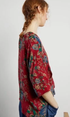 Lightweight bohemian floral printed cotton blouse with a v-neck and two front patch pockets. L61/66cm.