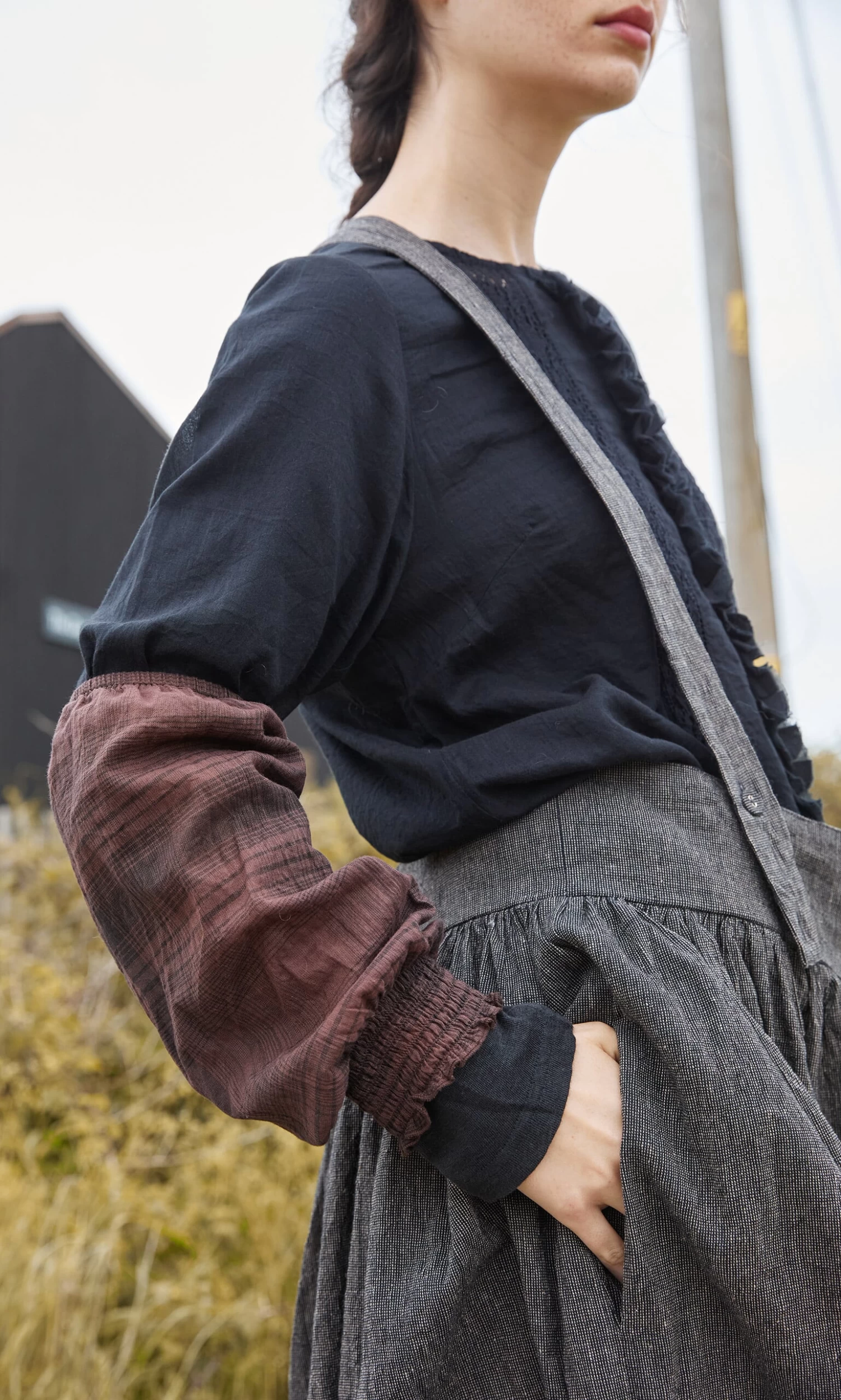 Check patterned arm cuffs made from soft voile like cotton. Bring a vintage feel to your outfit by adding extra texture and contrasting patterns. One size. L36cm.