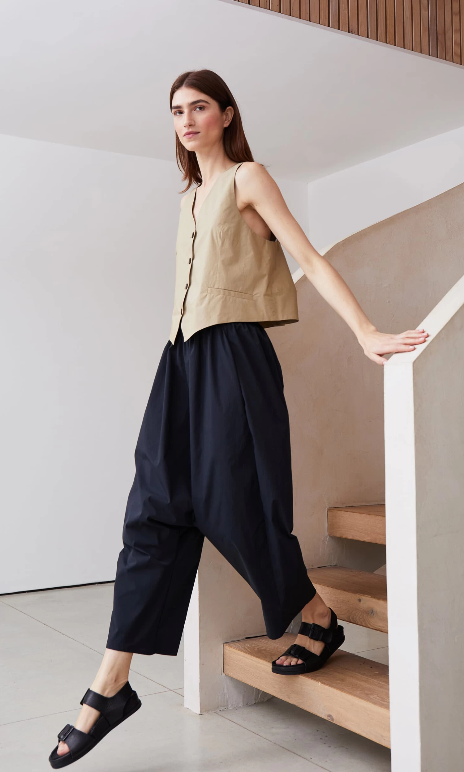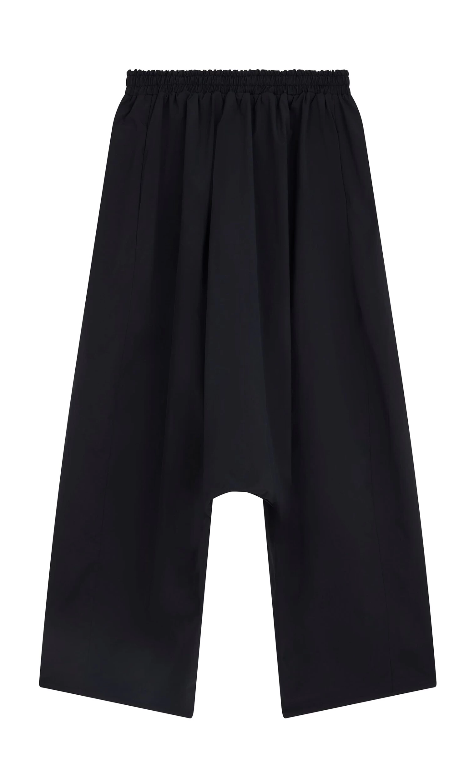 Super versatile cropped leg trousers. Relaxed fit with low crotch, elasticated waistband and side seam pockets.
