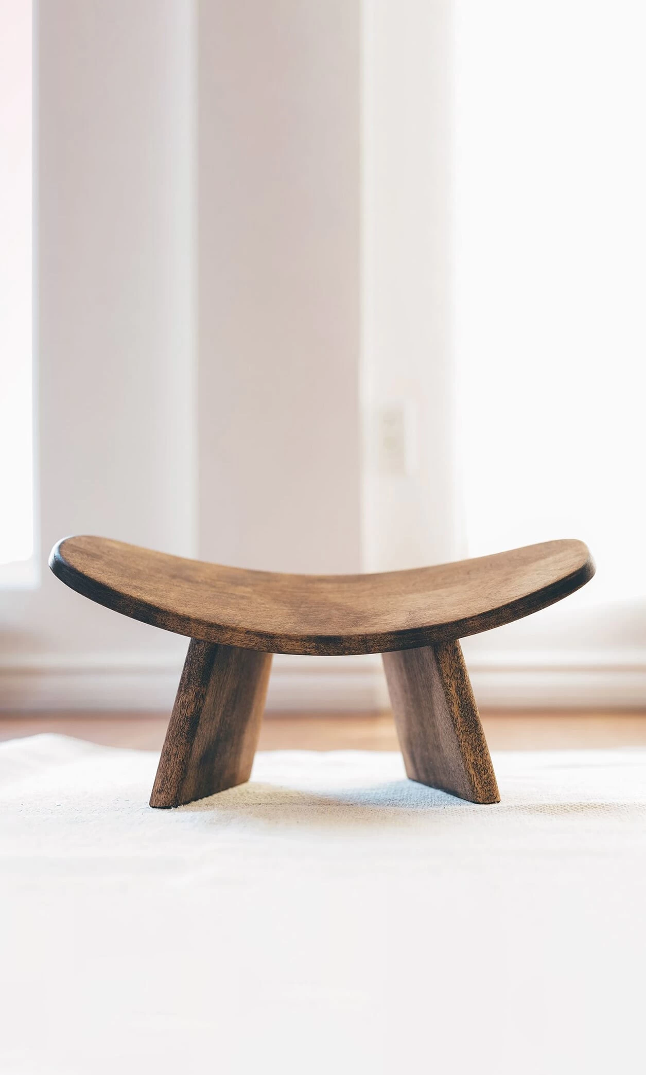 Ergonomically designed meditation stool handmade from smooth wild cherry wood. To increase comfort, the meditation bench features a slightly curved seat that tilts forward to support your body and improve your posture when meditiating for perfect breathing. A perfect alternative for those who find sitting cross legged uncomfortable. Also features detachable wooden legs to make it easy, light and compact to carry or even travel with. It’s beautifully wrapped in a cream canvas bag with drawstring and carry handle.