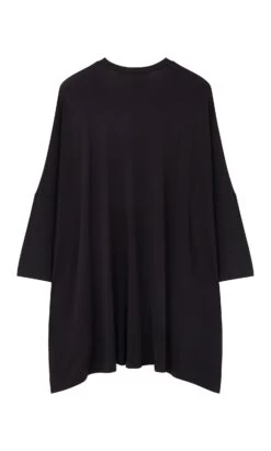 Fine black jersey top with plenty of stretch. Generous oversized shape offset with flatteringly narrow sleeves. Round neck. L88cm.