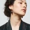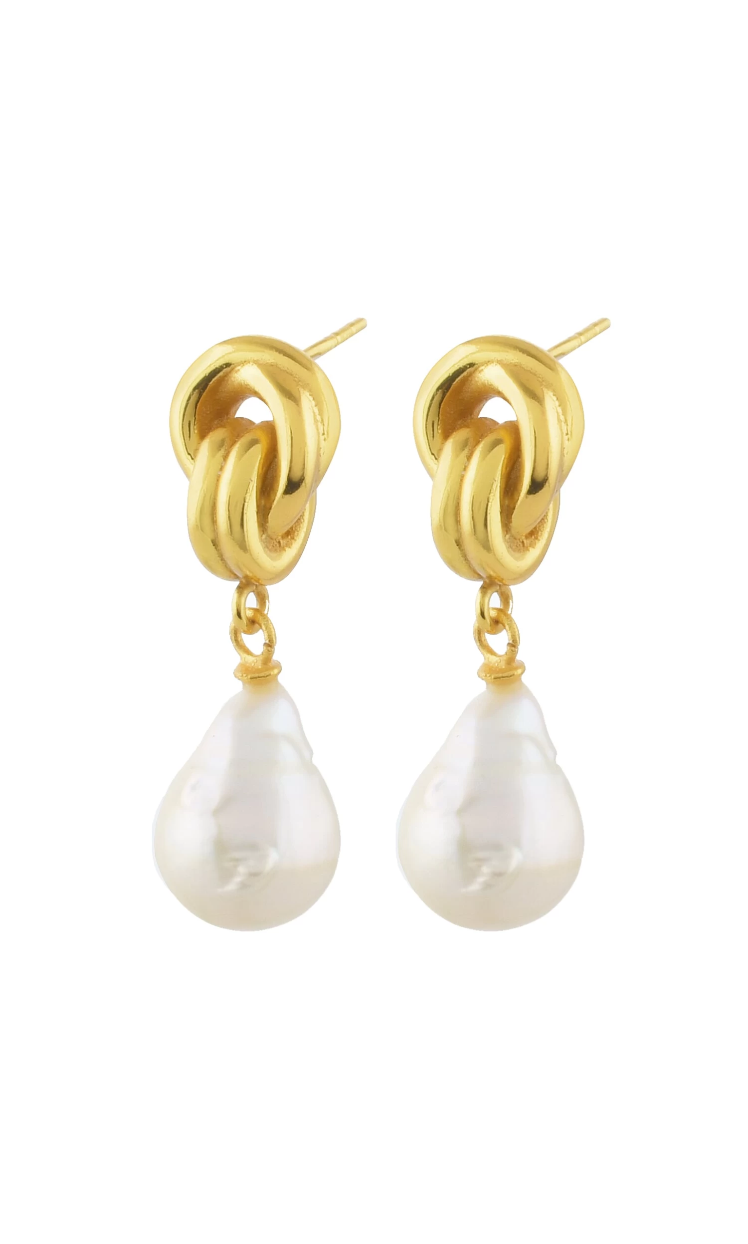 Elegant drop earrings comprised of a beautiful gold ribbed knot and a natural pearl pendant. All pearls are slightly irregular and different from one another making them entirely unique. Handmade from 22ct gold on sterling silver, measures approx. 3cm long.