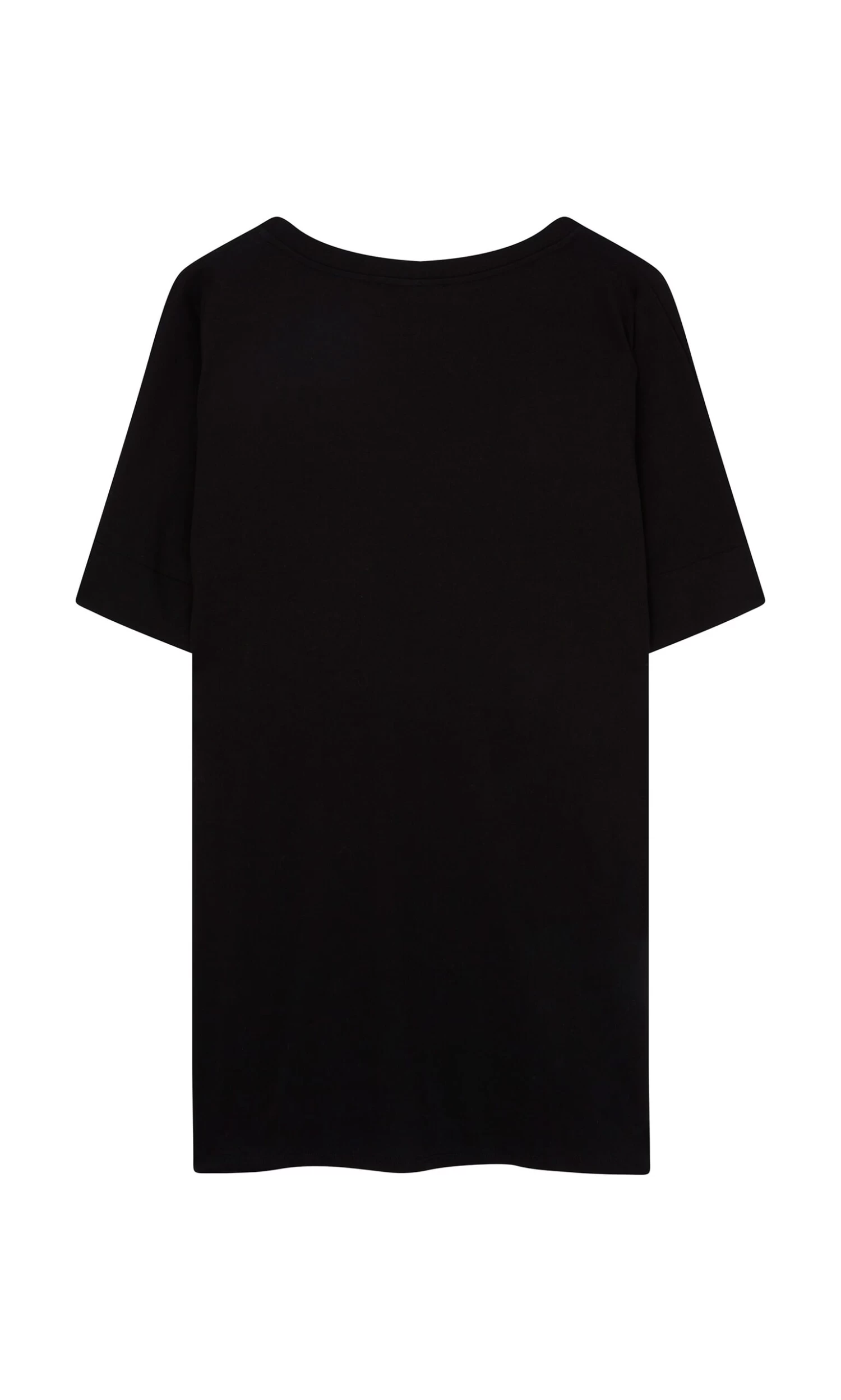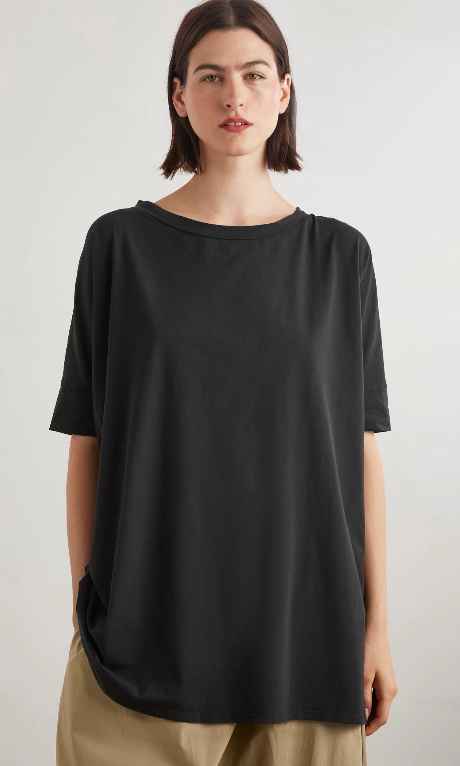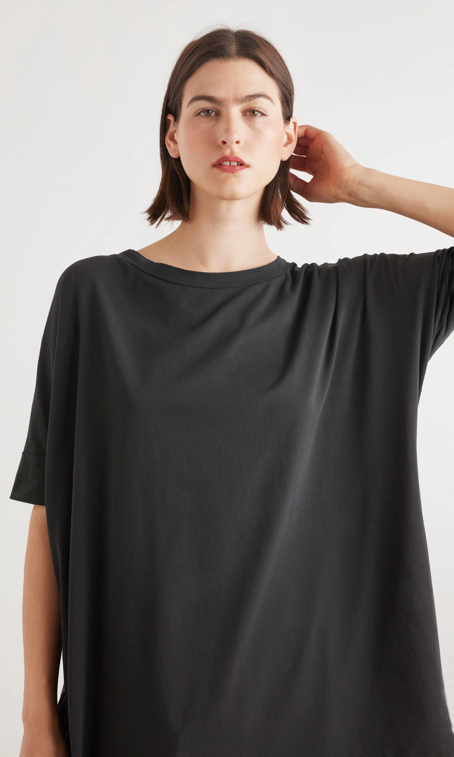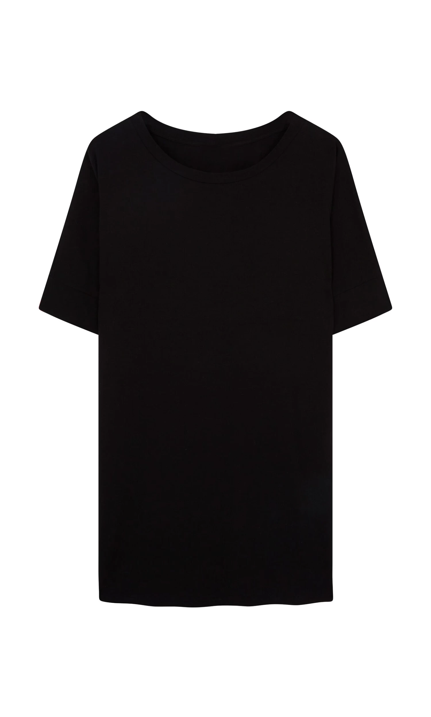 Infinitely wearable oversized t-shirt with flattering wide slash neck. Made from supple jersey cotton with a touch of stretch for easy comfort. Slouchy dropped shoulders and cropped sleeves. L86cm.
