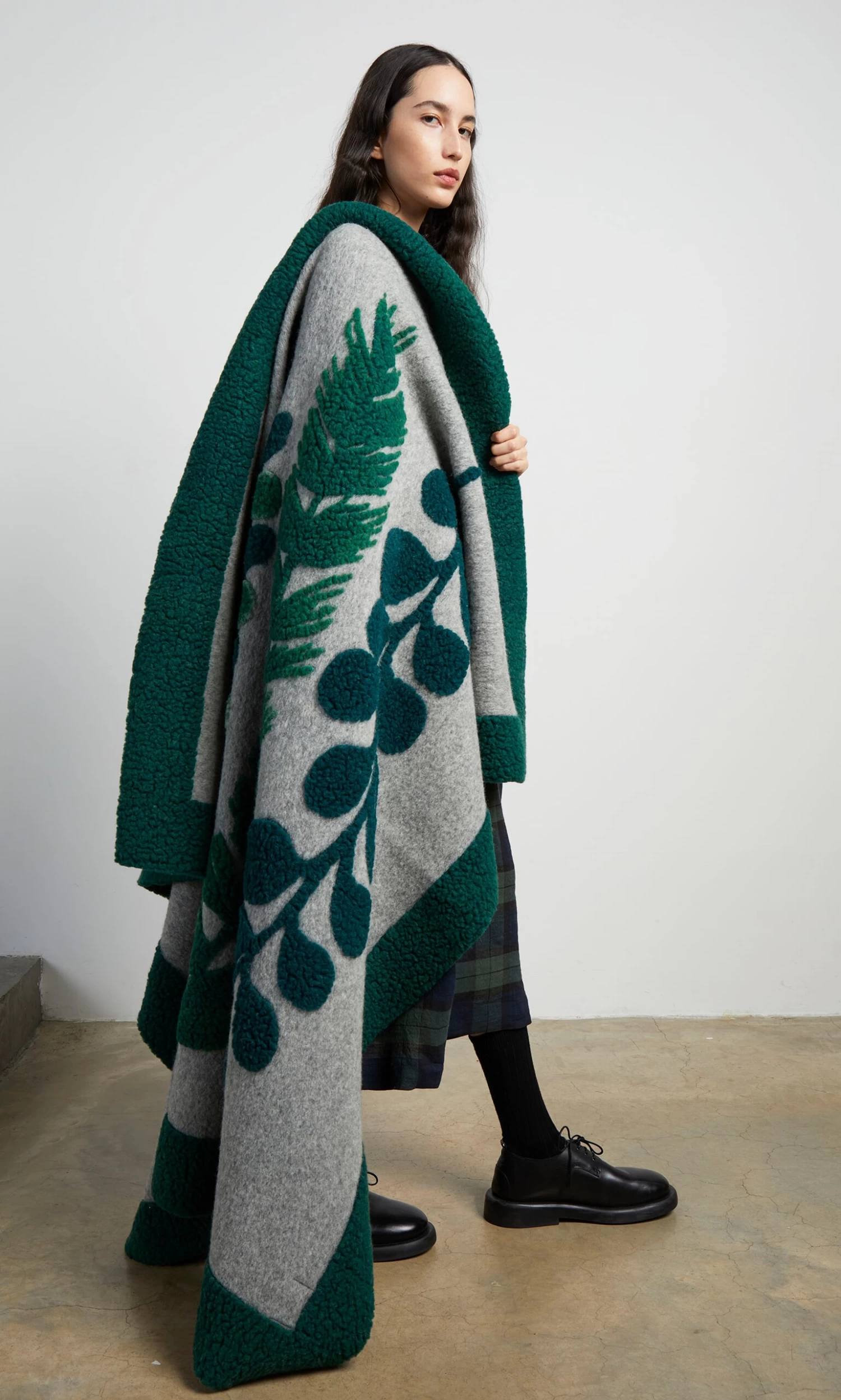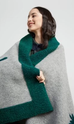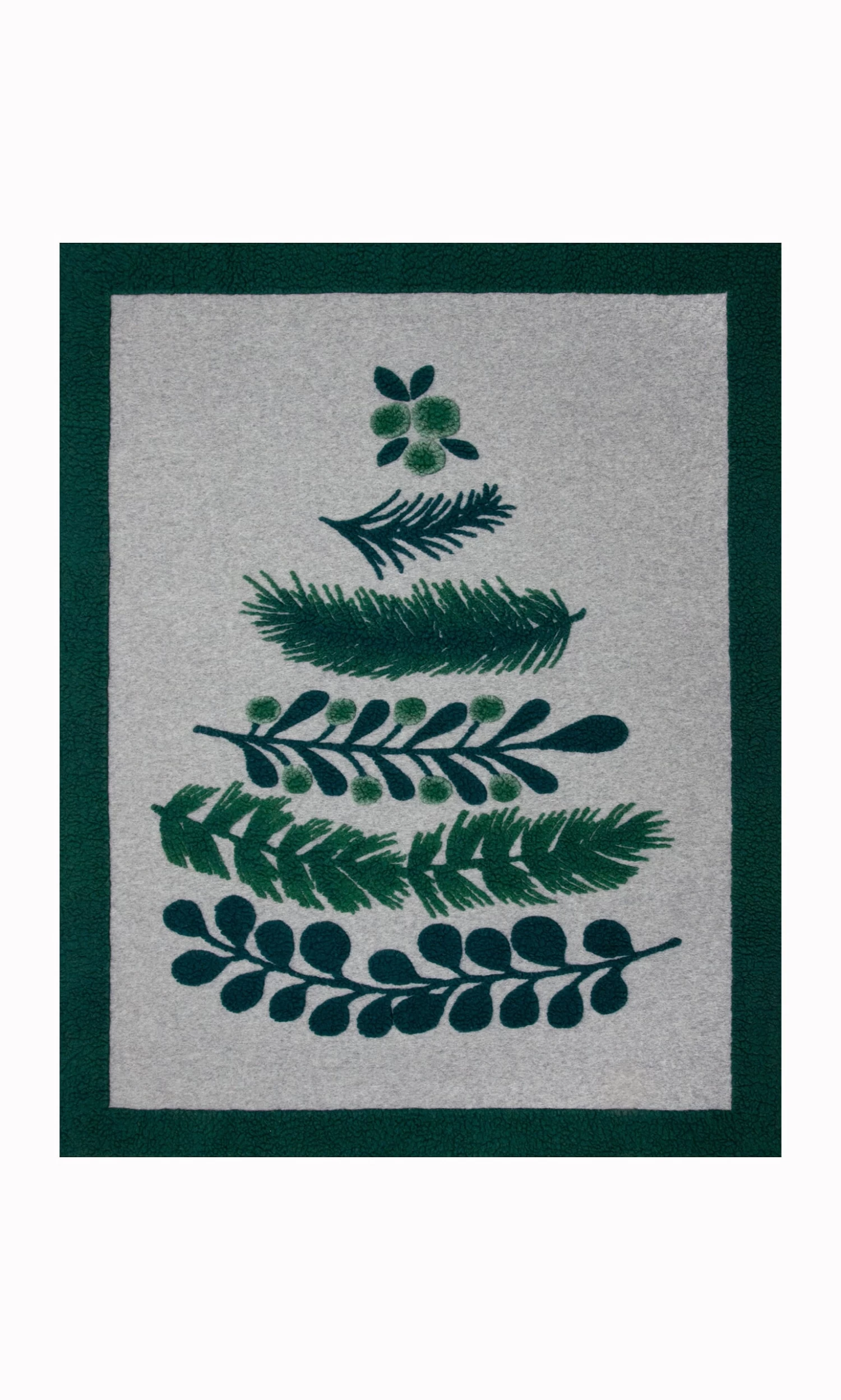 Grey fir tree wool blanket embellished with a textured border. Soft and lightweight. Sustainably made in Italy. 160cm x 190cm.