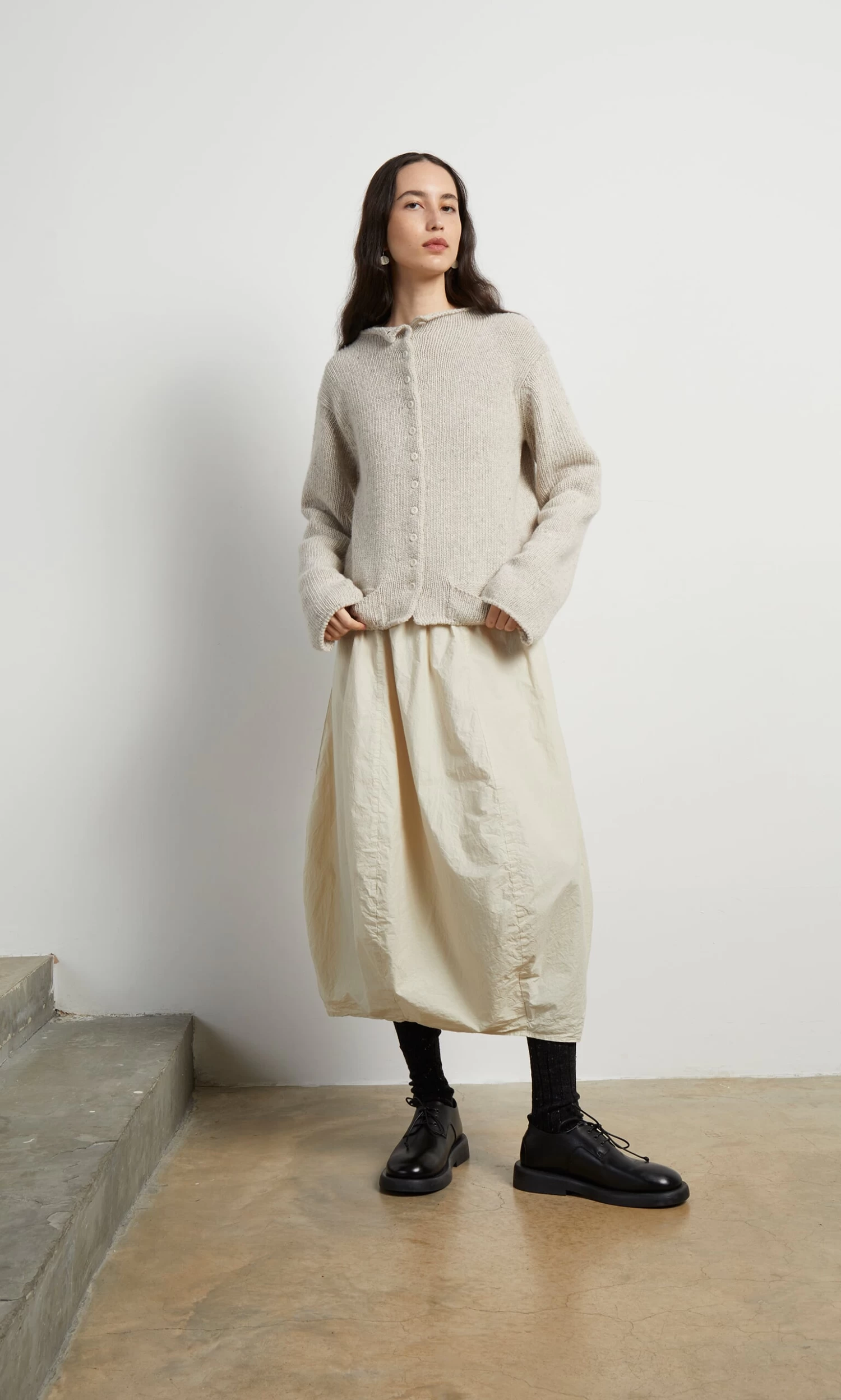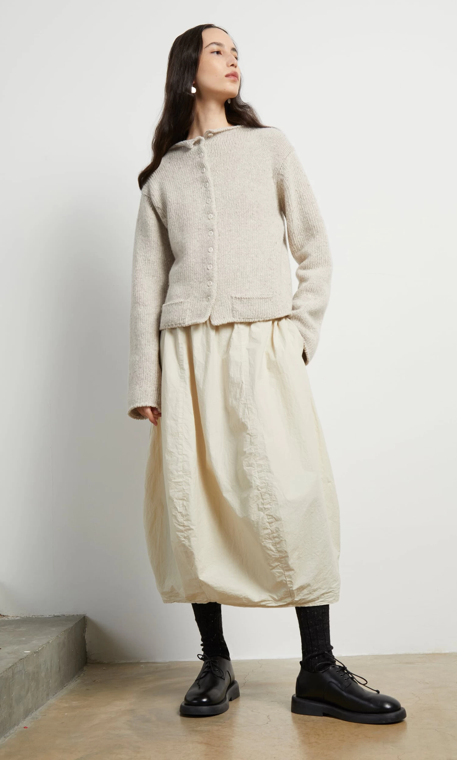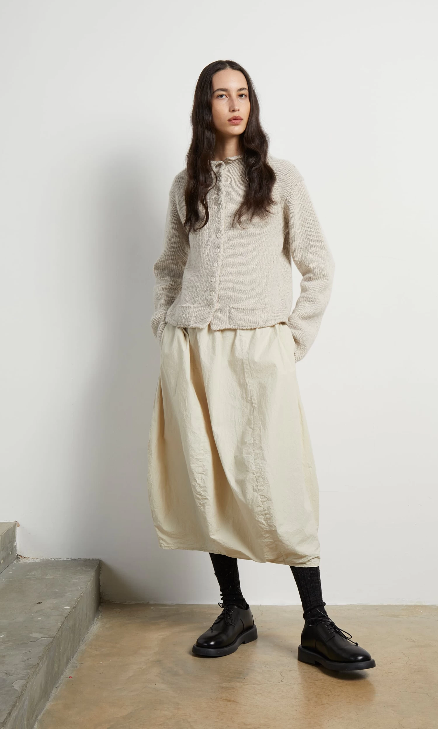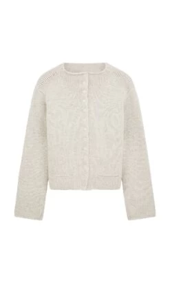 Neatly shaped button-up cardigan knitted in a soft blend of natural merino wool and cashmere. Pleasingly soft and weighty, the perfect chic body warmer with slip pockets positioned on the hem. Made in Scotland.