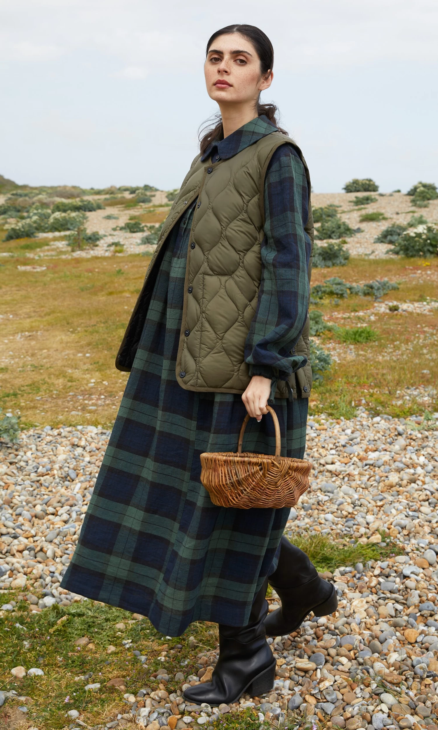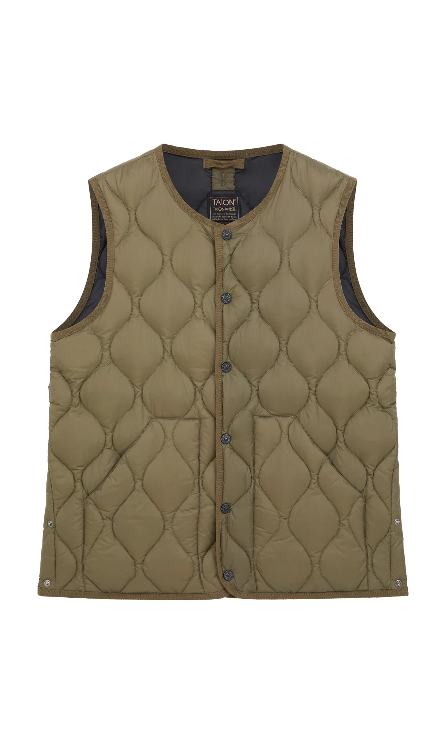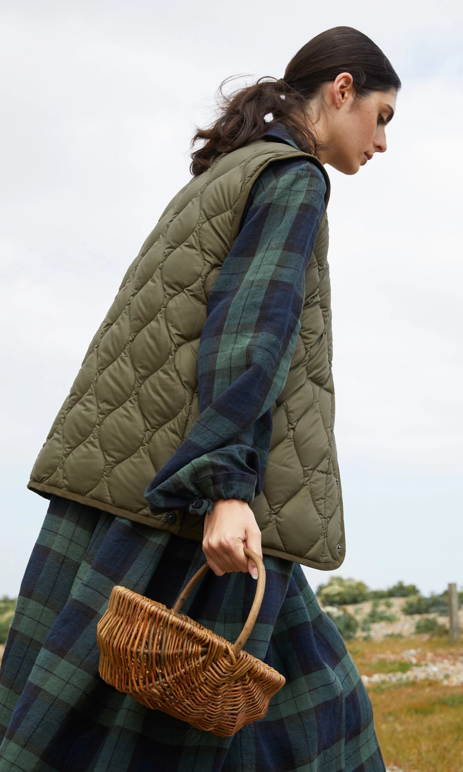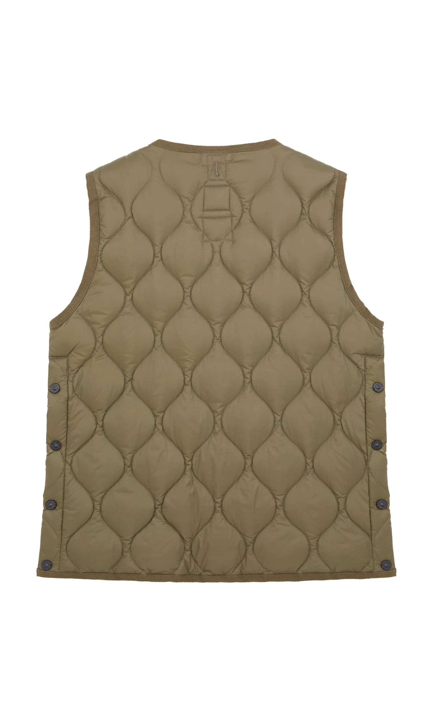 Supremely versatile quilted vest crafted from water and wind repellent nylon with an insulated down fill. Highly functional in that it is has poppers fastening up the sides to allow for layering. Supersoft and lightweight and comes with its own stash bag. Front pockets.