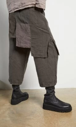 Hand-knitted grey marl vest embellished with folksy knitted and embroidered thistles around the bottom and yoke. Handknitted in Nepal from pure natural wools. Fairtrade production. Please note that due to the artisanal nature of this product, some details in the embroidery differ a little from the image shown, making each garment unique.
