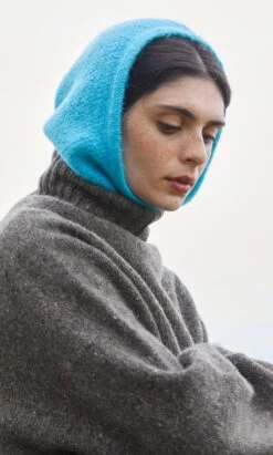 Snug knitted hood made from soft fuzzy yarns. Long enough to tuck inside a coat collar or jumper. Made in Italy.